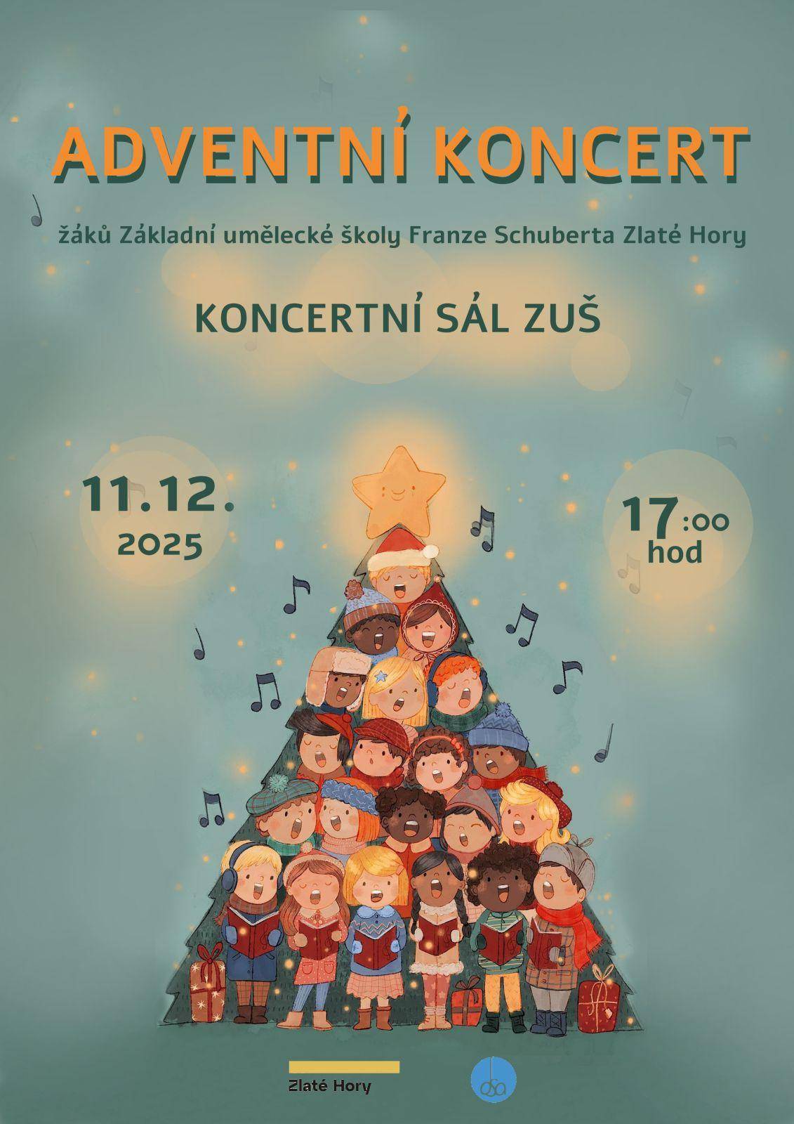 ADVENTNÍ KONCERT (Koncerty) 11.12.2025 od 17:00 do 19:00 hod. Základní umělecká škola Franze Schuberta, Zlaté Hory | Mapa Žáci ZUŠ France Schuberta Zlaté Hory