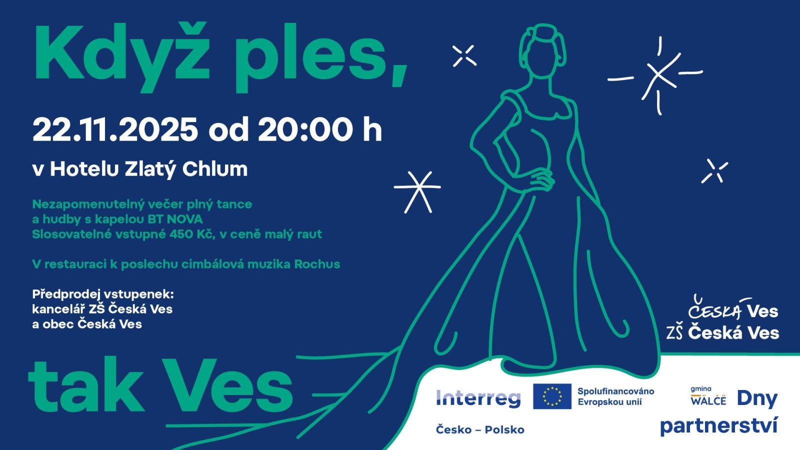 Když ples, tak Ves! Zveme vás na nezapomenutelný večer plný tance, hudby a skvělé nálady! Sobota 22. listopadu 2025 Začátek ve 20:00 Hotel Zlatý Chlum, Česká Ves Slosovatelné vstupné 450 Kč – v ceně je malý raut K tanci i poslechu hraje kapela BT NOVA V restauraci bude hrát cimbálová muzika Rochus Těšit se můžete na Lightshow - Šermířský spolek Šumperk Předprodej vstupenek: ➡️ Kancelář ZŠ Česká Ves ➡️ Obecní úřad Česká Ves Přijďte si užít večer, kde to bude žít!