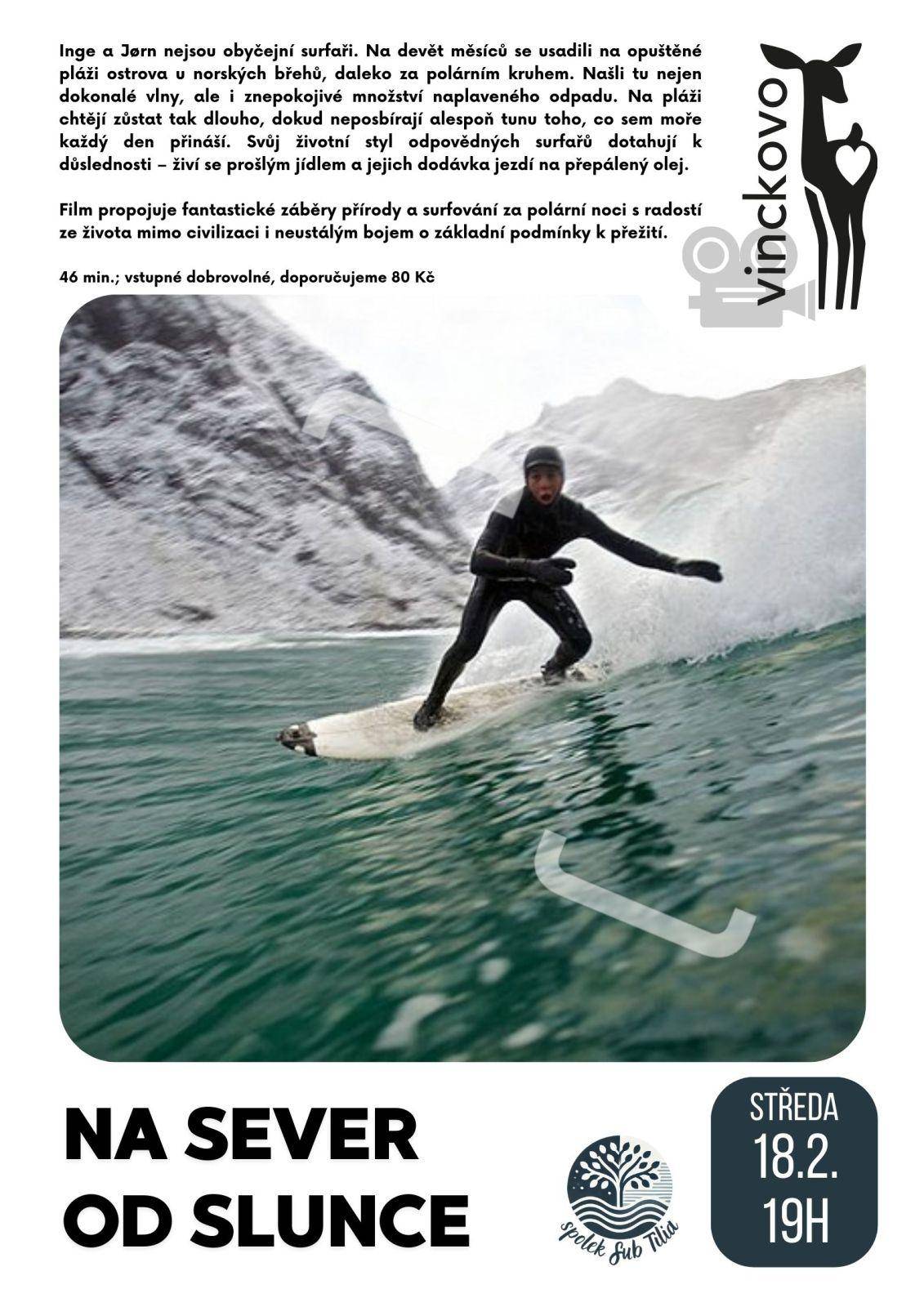 Norský pár se na devět měsíců usadil na opuštěné pláži za polárním kruhem: loví dokonalé vlny, ale hlavně sbírají odpad, dokud ho nebude aspoň tuna. Žijí mimo civilizaci na doraz – jedí levné prošlé jídlo, jezdí na přepálený olej – a mezi polární nocí, divokou přírodou a surfem si každý den doslova vybojují podmínky k přežití. Vstupné 80 Kč.