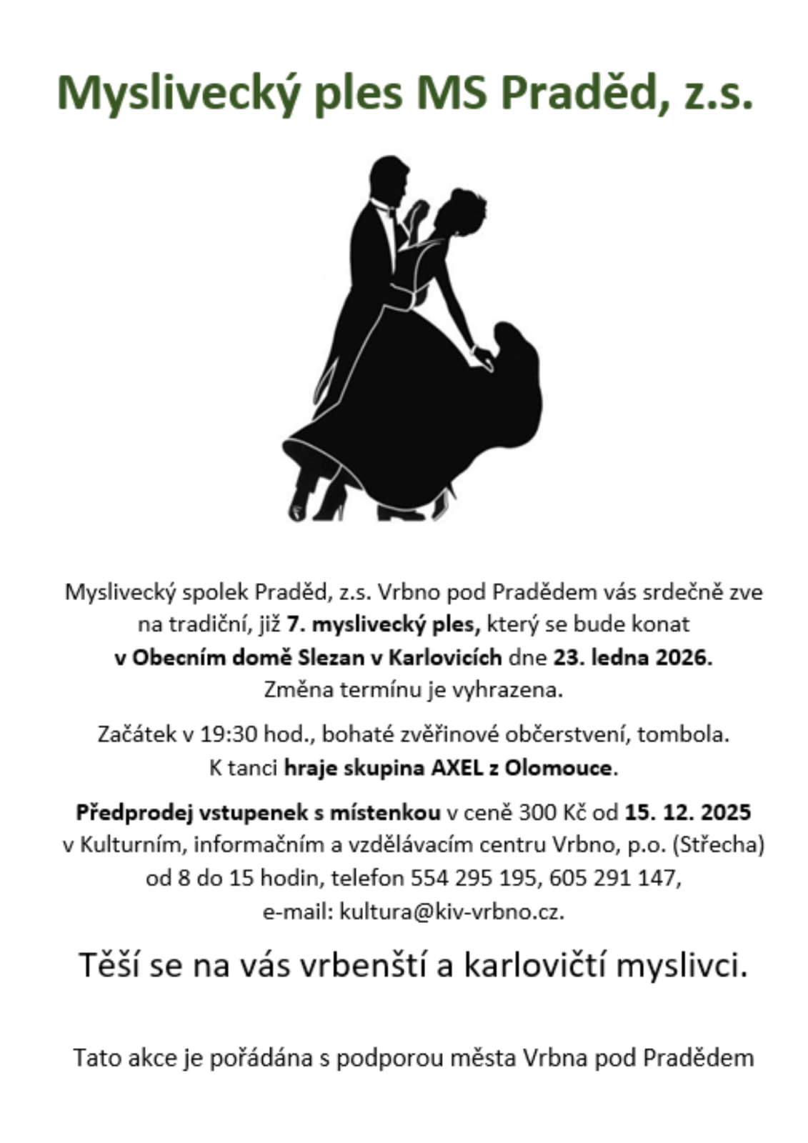 | 07.01.2026 od 17:00 do 18:30 hod. SŠGFaS Jeseník, Jeseník | MapaOTEVÍRÁME TANEČNÍ PRO SÓLO DÍVKY Z 8. A 9. TŘÍD ZŠ A STŘEDNÍCH ŠKOL OKRESU JESENÍK. ZAČINÁME VE STŘEDU 7.LEDNA 2026. TĚŠÍME SE NA VÁS A TANCUJTE S NÁMI! | |